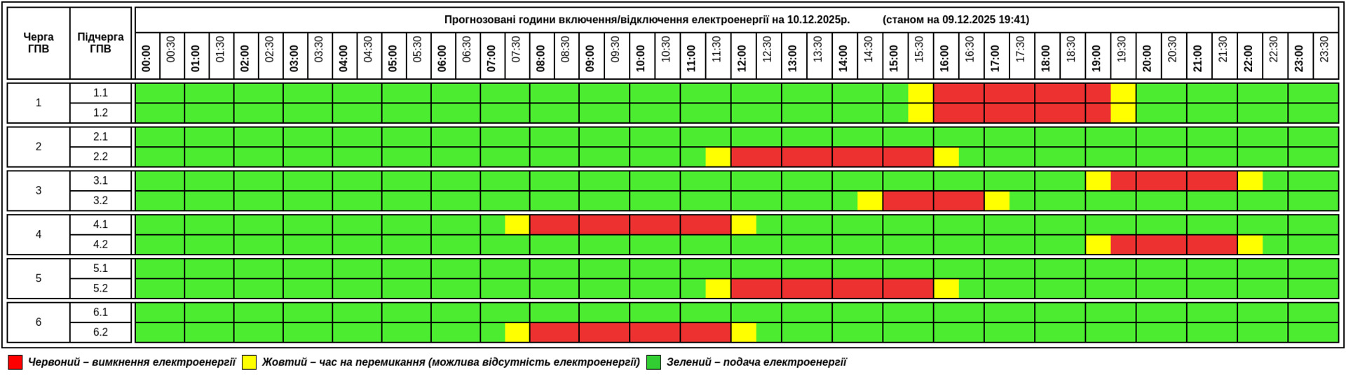 Публікуємо графік, який відомий станом на вечір 9 грудня: