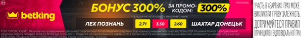 На думку експертів betking, Шахтар хоч і має перевагу, але лише мінімальну. На їхню перемогу дають коефіцієнт 2,60. Перемога Леха може збільшити ставку в 2.71 рази, а нічия – в 3.50.