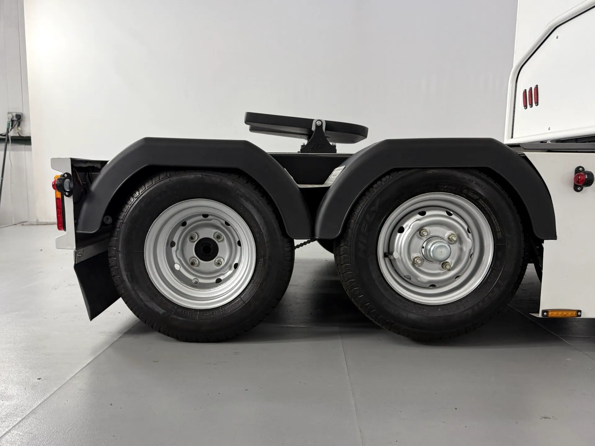 Тягач оснащений бензиновим двигуном потужністю 7 к. с. і може їздити як уперед, так й назад. Середня вісь, що цікаво, зроблена підйомною. У кабіні встановлені два сидіння з ременями безпеки. Кермо спортивного типу розташоване з правого боку. Машина укомплектована LED освітленням та пневматичними сигналами на даху.