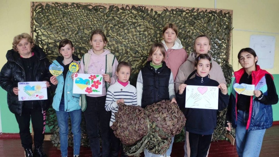 Учні школи також долучилися до ініціативи. Зокрема, вони сплели маскувальну сітку для потреб військових, створили малюнки, листи з побажаннями та щирими словами вдячності, а також підготували невеликі сувеніри, які стануть теплими оберегами для воїнів.