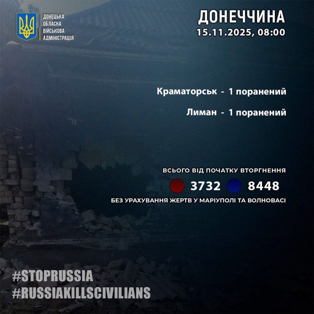 Зокрема, упродовж 14 листопада росіяни поранили мирних жителів Донеччини у Краматорську та Лимані.