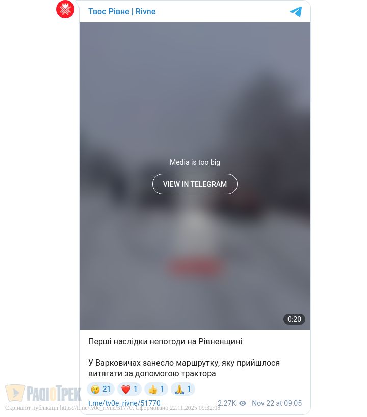 Відомо, що через ожеледицю у Варковичах з дороги злетіла маршрутка. Інформації про наслідки поки немає.