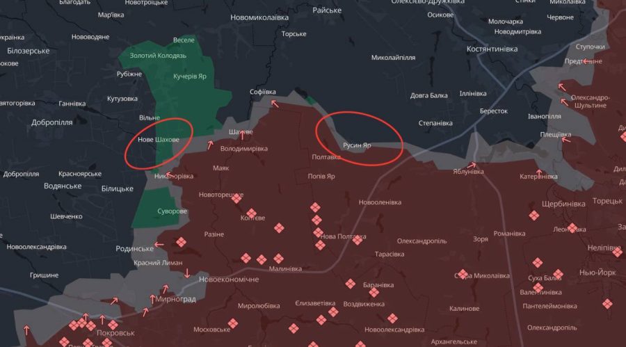 За даними аналітиків, війська РФ просунулися поблизу Русиного Яру, розташованого неподалік Костянтинівки, а також Нового Шахового та у Федорівці, що на північ від Мирнограда Донецької області.