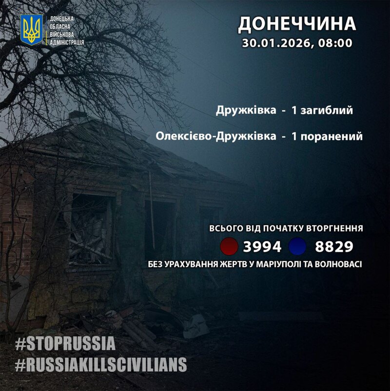 За минулу добу 29 січня росіяни вбили одного мешканця жителя Донеччини.
