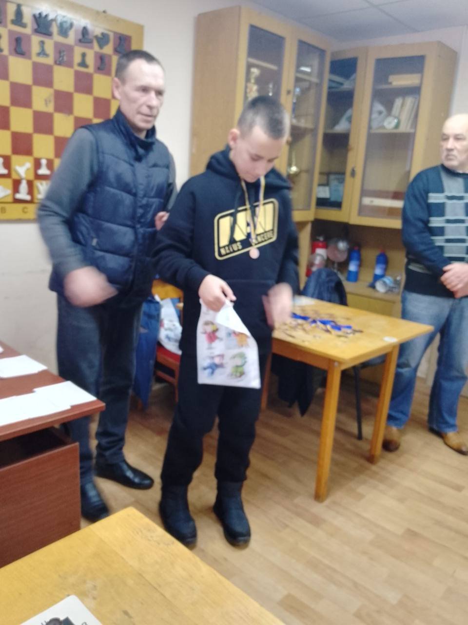 Призери в обох категоріях отримали медалі та грамоти також солодощі, так само як і всі учасники та переможець — Кубок, який вручив заступник голови шахово-шашкової федерації об’єднаних територіальних громад Кременчуцького району Сергій Сердюк, який поздоровив учасників з прийдешнім 2026 роком та побажав миру та спортивних досягнень.