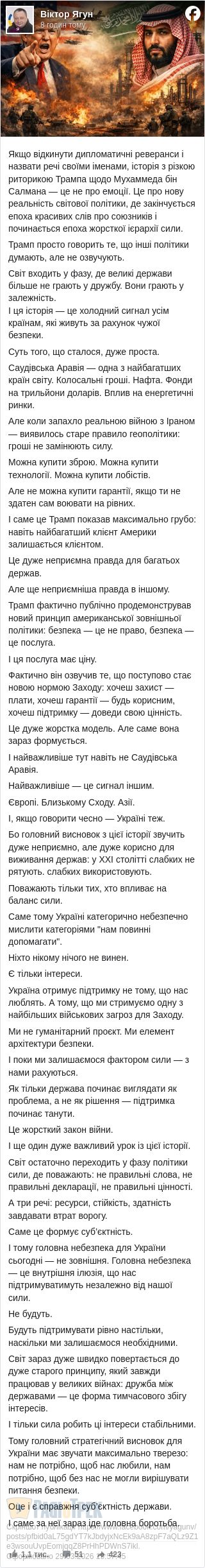 От що пише з цього приводу Віктор Ягун, текст якого зараз активно поширюють у мережі:
