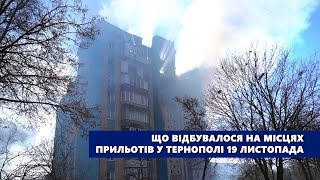 “Посипалося скло, почали сипатися стіни, штукатурка, вибило двері. Ми по тому склі виходили сюди, на землі вже лежали люди. Це було десь за 20 хвилин до 7 години ранку. Тут було дуже страшно, дуже. Люди лежали в крові”, – говорить мешканка 5-го під'їзду будинку на вулиці 15 квітня пані Ганна. Рятувальники гасили полум’я, розбирали завали та шукали постраждалих. Території будинків, зруйнованих російськими обстрілами 19 листопада, обгородили стрічками. Біля них люди намагалися додзвонитися до своїх рідних, які у момент трагедії були у будинку. Поруч священники молилися за покійних. Таку сумну картину бачили журналісти Терену на місцях прильотів у Тернополі.