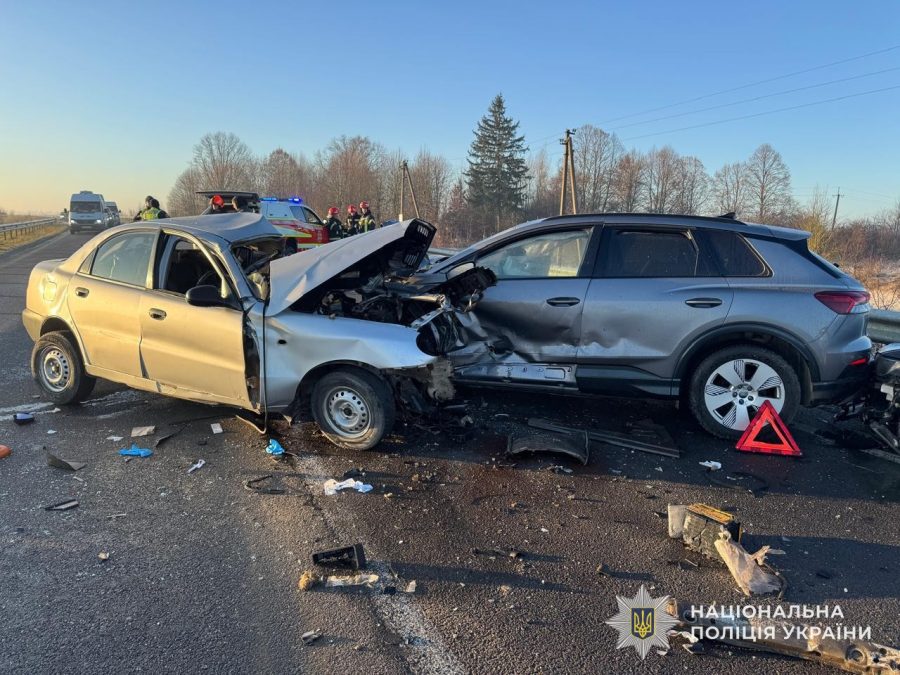 Тут на трасі Львів – Пустомити – Меденичі автомобіль Daewoo Lanos врізався в Audi e-tron, після чого Audi зіткнувся з Volkswagen Passat.