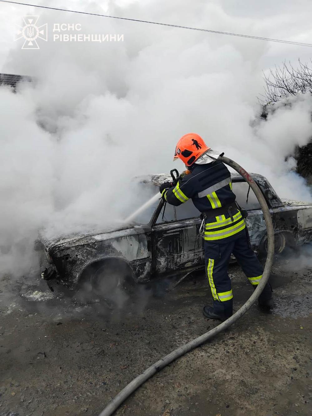 Учора о 15:10 до Служби порятунку «101» надійшло повідомлення про загоряння легкового автомобіля ВАЗ-2106 неподалік села Дмитрівка Бабинської територіальної громади Рівненського району.