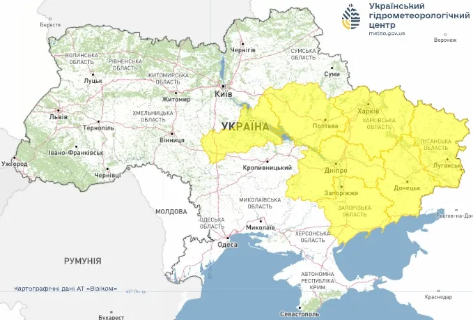 Объявлен первый (желтый) уровень опасности. Об этом сообщили в Укргидрометцентре, передает 24 Канал.