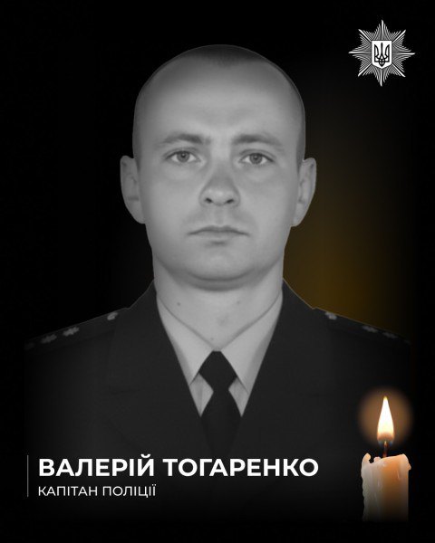 Сьогодні вранці унаслідок ворожого обстрілу у Херсоні загинув капітан поліції Валерій Тогаренко.