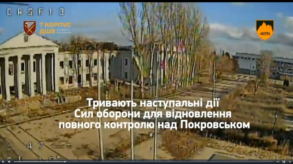 На видео – приветствие украинских воинов из Покровска. Они разрушают иллюзию «успеха» российских пропагандистов, которые пока могут двигаться в тумане по ограниченному маршруту к югу от железной дороги.