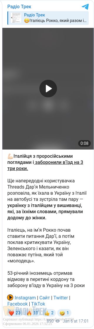 Ще й заборонили конкретно пропутінському італійцю – вʼїзд до нас на наступні 3 (три) роки.