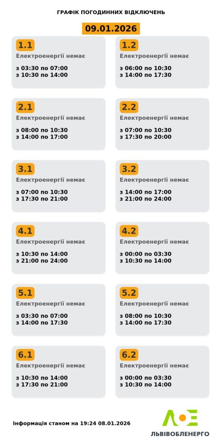 Як на Львівщині вимикатимуть світло 9 січня