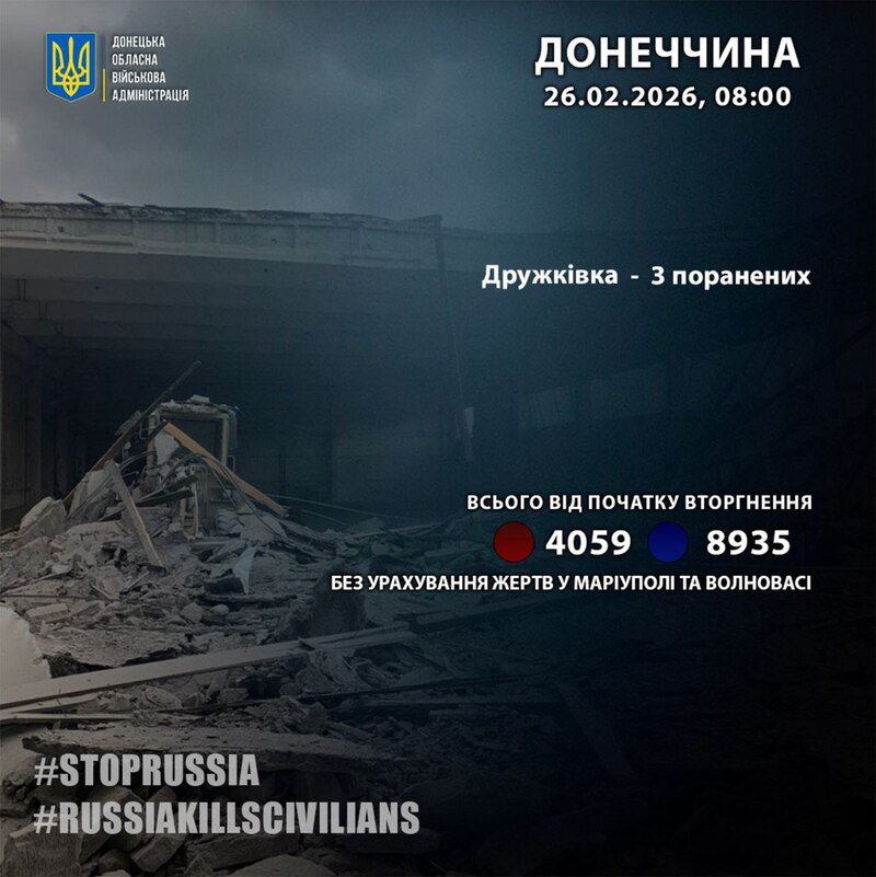 За минулу добу Росія поранила трьох мешканців Донеччини