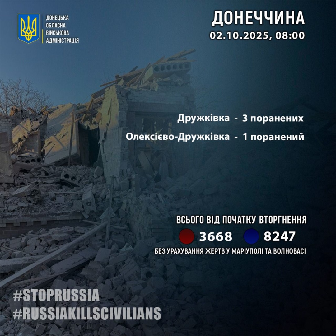 Російські загарбники минулої доби, 1 жовтня, завдали поранень чотирьом жителям Донецької області.