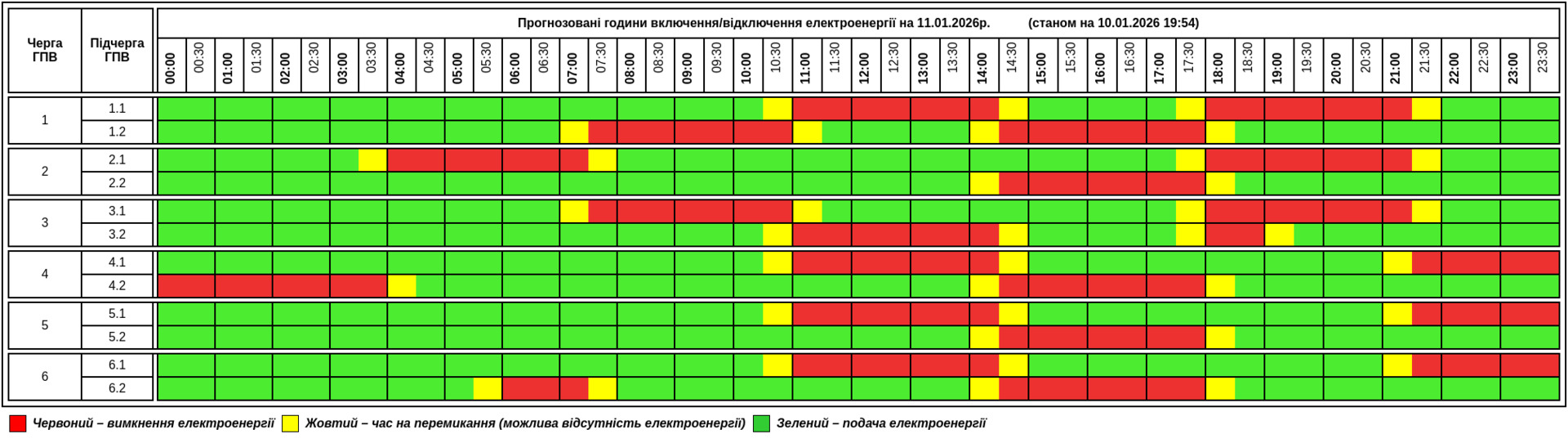Публікуємо графік, який відомий станом на 20 січня 19:54: